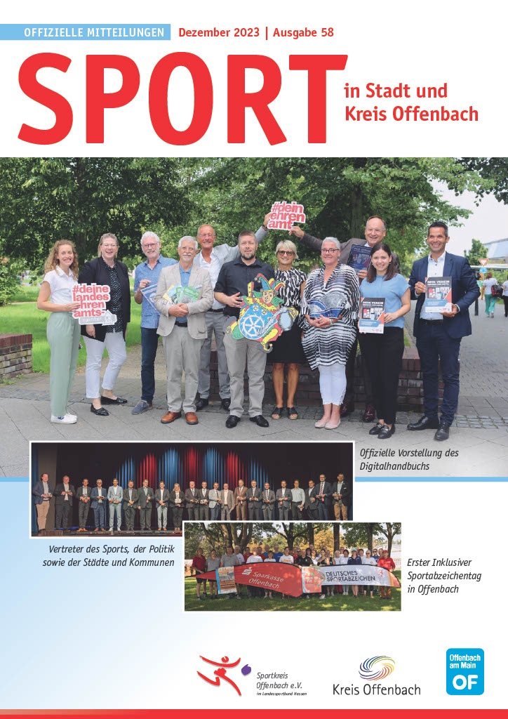 In Kooperation mit der Stadt und dem Kreis Offenbach veröffentlicht der Sportkreis Offenbach jährlich 2x die Informationsschrift "Sport in Stadt und Kreis Offenbach". Im Rahmen dieser Zeitschrift informieren wir alle Sport-Interessierten über aktuelle und vergangene Ereignisse sowie Entwicklungen in unserem Sportkreis.